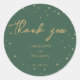 Cet autocollant de remerciement mariage de Noël simple et classique présente un fond blanc clair et propre avec des accents de calligraphie manuscrits et des lettres noires et dorées simples et minimalistes. Les ornements de belles et classiques couronnes vertes et rouges de Noël avec des traits d'or délicats créent une esthétique de vacances d'hiver parfaite tout en maintenant une élégance polie pour votre mariage de Noël ou tout autre événement spécial. Comme pour tous nos designs, si vous avez des questions concernant le design ou si vous souhaitez quelque chose spécialement fait pour coordonner avec votre mariage, n'hésitez pas à demander.