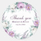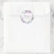 Cet autocollant rond lavande-violet mariage présente des pivoines d'aquarelle blanches et violettes, de la lavande, des formes géométriques et de la typographie. Idéal pour un mariage extérieur. Trouvez les articles correspondants dans Lavender Purple Floral Mariage Collection.