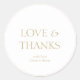 Cet autocollant de remerciement simple et mariage blanc présente un texte Love & Thanks dans un taupe doré contemporain et des noms de couple.