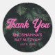 Cet autocollant de remerciement de chauve-souris rose tropicale est parfait pour envoyer vos invités à la maison avec un souvenir d'amour de votre événement. Le design est composé de feuilles de palmiers verts et d'un texte personnalisé rose pour célébrer votre Bat mitzvah. Entrez l'outil de conception Zazzle pour effectuer des ajustements.