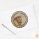 Autocollant rond avec l'image d'une mosaïque romaine réelle d'un lion. Voir les confettis assortis, étiquette préférée, étiquette et papier d'emballage. Voir l'ensemble de la collection Toga Sticker dans les INVITATIONS | Section Stickers & Étiquettes.