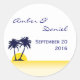 Un autocollant moderne parfait pour un mariage à la plage. Comprend deux palmiers bleu marine avec un coucher de soleil jaune dans l'arrière - plan et des rayures jaunes au fond. Idéal pour un événement sur le thème de l'océan, de la mer ou de la plage. Design propre et élégant avec un look contemporain. Utilisez-le pour sceller des enveloppes ou pour des faveurs de fête. CONTACTEZ MARLENEDESIGNER SI VOUS AVEZ BESOIN D'UNE COULEUR OU D'UN CHANGEMENT DE LIGNE