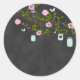 Rond Sticker en tableau avec fleurs roses et jarre Maso