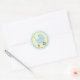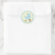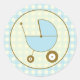 Un autocollant avec un chariot bleu clair à l'intérieur d'un cadre en forme de cercle. Arrière - plan en vichy vert. Recherchez les articles correspondants tels que les invitations dans la section "Baby Shop" du Pink Schoolhouse Store.