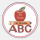 Cette auto-collante d'enseignant personnalisée a une place pour son nom et la note qu'elle enseigne. Il y a des cercles sur le bord extérieur avec une pomme, crayon et ABC.