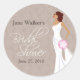 Un autocollant de douche nuptiale pour la mariée moderne. Une mariée royale se dresse contre un arrière - plan vintage à motifs floraux taupe. Utilisez-le sur vos invitations, cartes de voeux ou pour sceller des sacs de faveur. Disponible en couleurs alternatives. Contactez-moi si vous cherchez une autre combinaison de couleurs et/ou une autre mariée. Invitations assorties, cartes de remerciement et affranchissement disponibles. com