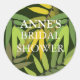 Un autocollant de douche nuptiale unique Feuille vert.Facile d'ajouter votre nom, date, choisir d'autres polices et couleurs de police.