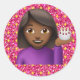Rond Sticker fille Emoji parties scintillant