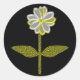 Ce joli jeu d'autocollants à fleurs est doté d'une image numérique d'une marguerite avec une tige verte avec deux feuilles verts et des pétales blancs et jaunes avec un centre jaune. Les pétales ont l'air de briller d'une belle qualité réfléchissante. La fleur est sur un arrière - plan noir pour un contraste maximum et le résultat est stupéfiant.