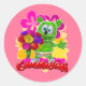 Autocollant floral rond avec Gummibär - l'ours de gymnastique préféré de tous.