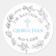 Un dessin simple dessin de feuilles de citron et d'olivier dessinent cet autocollant baptism. Accentué par une croix bleue. Partie de la "George Collection". Embellisté avec une croix qui peut être déplacée ou enlevée. Visitez notre boutique soeur www.pixieprints.com pour tous vos besoins d'invitation!