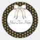 Un élégant autocollant avec un arrière - plan noir et un motif de flocon doré.Il y a un arc blanc et une zone de texte,