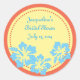 Autocollant moderne et coloré. Utilisez-le pour la faveur de la partie ou pour sceller les enveloppes. Idéal pour une douche nuptiale à thème luau ou hawaïen. Dispose d'hibiscus avec un motif pois tendance en bleu sur un arrière - plan orange. Un design qui attire l'oeil et les battements. Ajoutez votre propre libellé.