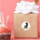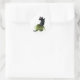 Un chat noir danse la hula dans une jupe d'herbe sur ces stickers amusants.