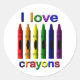 Illustration graphique de crayons avec du texte magnétique du réfrigérateur qui dit "I Love crayons" par l'artiste-designer Charmaine Paulson sur une variété de produits.