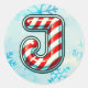 Rond Sticker "J" de Noël sucre de canne, Stripes festiv