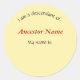 Rond Sticker - Je suis un descendant de ...