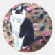 D'une peinture à l'huile originale de Brenda Thour d'un chat noir et blanc entouré de fleurs roses. Copyright par Brenda Thour 2007.
