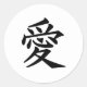 Kanji Love Classic Round Sticker. Le design circulaire le rend parfait comme joint d'enveloppe.