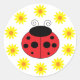 Un joli design de coccinelle entouré de marguerites jaunes sur un autocollant rond!