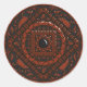 Ce mandala sur le thème de Leo présente une pierre d'onyx entourée du symbole du signe, de la constellation et du symbole alchimique du feu parmi les fibres de cuivre rougeâtres et les tissages gravés.
