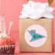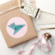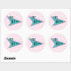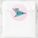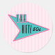 Autocollant rond avec l'image d'un panneau de diner les années 50 bleu et rose avec le texte "The Nifty les années 50" sur des rayures roses-sur-rose molle. Voir collant vinyle taillé sur mesure, confetti, sac de faveur, étiquette de faveur, sacs cadeaux, étiquette et papier d'emballage. Voir l'ensemble de la collection Nifty les années 50 Sticker en INVITATION | Section Stickers & Étiquettes.