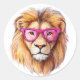 Rond Sticker Lion avec lunettes roses