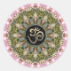 mandala de design géométrique vert et rose créé à partir de fractales et de photos de plantes avec le symbole de méditation rose Om Sanskrit artistique.