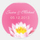 Classy Chic Lotus Mariage Sticker présente un élégant arrière - plan radial rose avec une fleur de lotus rose / fleur de lys d'eau dans le coin. Les bords supérieur et inférieur sont ornés d'un motif en chevron blanc. Trouvez RSVP correspondant, enregistrez les dates, les timbres, les étiquettes, les numéros de table et bien plus dans le magasin principal ou envoyez-moi un courriel pour une conception personnalisée. Vos invitations et annonces de mariage auront un regard professionnel sur notre papier de haute qualité. Chaque invitation de mariage est accompagnée d'une enveloppe blanche. D'autres enveloppes correspondantes peuvent également être commandées. Si vous ne trouvez pas ce que vous cherchez, n'hésitez pas à nous contacter, nous ferons en sorte que votre design soit prêt dès 24 heures