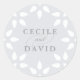 Scellez vos enveloppes de faire-part de mariage, faveurs et plus encore avec nos élégants autocollants d'inspiration marocaine dans des tons gris argenté et blanc pâle. Le design rond présente vos noms reliés par un script décoratif et entourés d'une bordure géométrique en blanc sur un arrière - plan gris colombe pâle. Coordonnées avec notre collection de faire-part de mariage arabesques dans Silver Pearl.