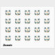 Comprend 20 petits autocollants sur une feuille. Un charmant autocollant représentant un couple en tenue mariage partageant un baiser sur une plage sereine bordée de palmiers encadrant le coucher du soleil.
