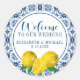 Un joli autocollant de bienvenue décoré de citrons et de carreaux bleu italien. Parfait pour accueillir vos invités mariages Conçu pour vous par Blackberry Boulevard.