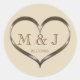 Rond Sticker Mariage de coeur d'or monogramme mignon