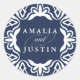 Scellez vos enveloppes de faire-part de mariage, faveurs et plus encore avec nos élégants autocollants d'inspiration marocaine en bleu marine et blanc. Le design rond présente vos noms reliés par un script décoratif et entourés d'une bordure géométrique en blanc sur un arrière - plan bleu marine classique. Coordonnées avec notre collection de faire-part de mariage Marrakech en marine.