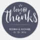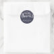 police de caractères décorative vintage et rustique mariage Merci sticker. Elégant et classique design marine bleu et blanc de mariage faveur autocollant. Soirée de mariage classique, étiquette de douche nuptiale, fête d'anniversaire, dîner fiançailles, baby shower et bien plus encore. La couleur de l'arrière - plan peut être changée pour le thème souhaité.