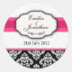 Rond Sticker Mariage de monogramme noir et blanc Damask