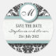 Rond Sticker Mariage de monogramme noir et bleu Damask