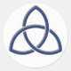 Cet autocollant mariage saphir bleu et blanc a un symbole de noeud d'amour celtique en faux relief. Il correspond au faire-part de mariage ci-dessous.
