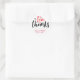 police de caractères décorative vintage et rustique mariage Merci sticker. Élégant, doux et mignon design noir, rouge et blanc mariage favorise autocollant. Joli autocollant de typographie pour la faveur de mariage, étiquette cadeau de douche nuptiale, fête d'anniversaire, dîner fiançailles, baby shower et bien plus encore. La couleur de l'arrière - plan peut être changée pour le thème souhaité.