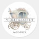 Un autocollant mariage de fée de forêt enchantée pour les enveloppes, avec une aquarelle luxuriante magique mariage chariot