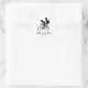 Une jolie silhouette noire montre un garçon et une fille sur un vélo. Le garçon colle et la fille se tient sur la roue arrière en lui tenant dessus. Autocollant mariage adorable pour un couple qui aime faire du vélo ensemble. Leurs noms sont écrits ci-dessous dans un script insouciant puis leur date de mariage. Vous pouvez facilement customiser le texte et les couleurs arrière - plans pour correspondre aux couleurs mariages.