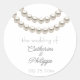 Scellez vos invitations de mariage dans un style intemporel avec cet élégant autocollant rond avec un délicat motif de collier de perle. Personnalisé avec les noms du couple et la date mariage, cet autocollant classique ajoute une touche raffinée et romantique aux enveloppes, faveurs, et plus encore. Idéal pour l'esthétique mariage classique ou à thème perle.