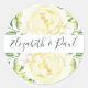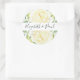 Scellez vos enveloppes ou faveurs d'invitation avec ces beaux autocollants de mariage à l'aquarelle fleurie avec des roses, olives et feuillage jaune aquarelle. Vos noms sont écrits à la main en caractères de calligraphie.