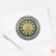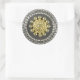 Autocollant rond avec l'image d'un médaillon d'or et d'argent orné vintage. Voir les confettis correspondants et le papier d'emballage. Voir l'ensemble de la collection Gemstones & Medallions Sticker dans la section CARDS, POSTCARDS & STICKERS.