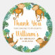 C'est parfait fête d'anniversaire merci autocollant pour votre petit singe qui en tourne un. Cet autocollant de fête d'anniversaire de thème safari animal a texte de script typographique qui est également personnalisable. Convient le mieux pour les garçons fête de premier anniversaire.