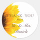 Sticker de mariage Brown en Merci de tournesol jaune moderne avec M. et Mme format. Superbe photo de tournesol sur arrière - plan blanc avec votre date et vos noms mariages. Parfait pour un mariage de automne ou un mariage campagnard.