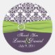 Rond Sticker Merci Lime et pourpre Damask