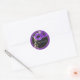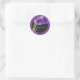 Cet autocollant de remerciement de mascarade comporte un beau masque avec un graphisme de broche en diamant et perle, des torsades en ruban, une bordure damassée, une bordure dorée et un arrière - plan de look texturé noir. Facilement customisé. Beaucoup de couleurs - violet
