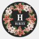 Cet autocollant monogramme de nom combine élégance et audace, esthétique sombre, ce qui le rend parfait pour une touche sophistiquée sur les faveurs, les sacs cadeaux ou les invitations. Le design comporte une lettre centrale monogramme avec la date de l'événement en dessous en blanc classique, placé contre un arrière - plan noir profond. Autour de la première est une couronne de fleurs luxuriantes magnifiquement arrangée dans des tons riches de rose roux et d'orange chaud, accentué par des feuilles verts vibrants. Cet autocollant ajoute une touche personnelle raffinée à tout événement, idéale pour ceux qui cherchent à incorporer un thème floral sombre et romantique dans leur décor.