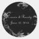 Rond Sticker Monogramme Mariage damassé noir et blanc